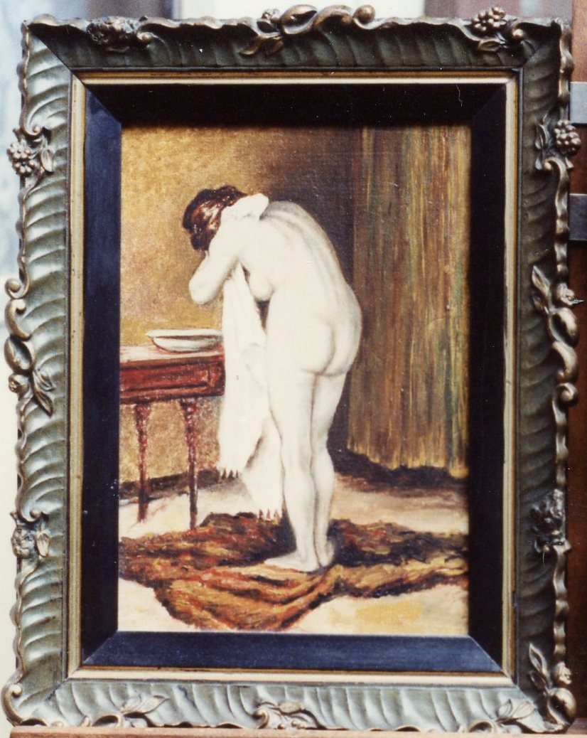 24.Naakt, gebogen over een waskom olieverf op doek ca. 20x30cm |