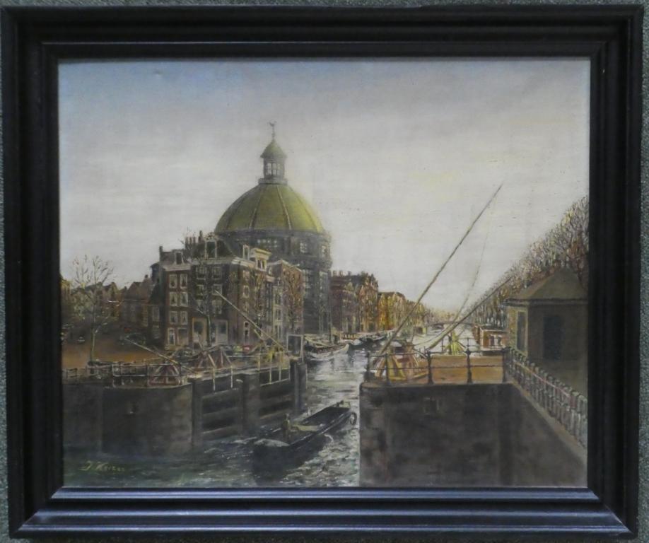 33.Singel bij de Haarlemmersluis met Ronde Lutherse Kerk olieverf op doek 59×48,5cm |