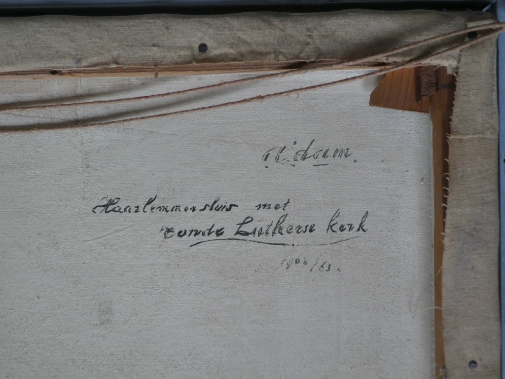 ![]() ![]() Detail met tekst achterzijde doek |