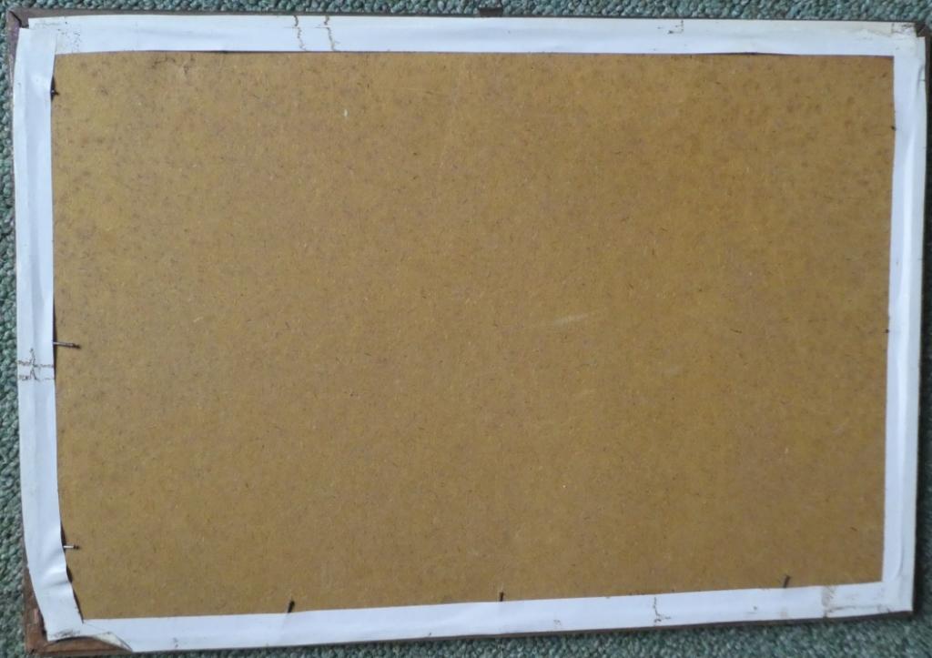 in iets beschadigde koperen lijst met glas 39,5 x 27 cm